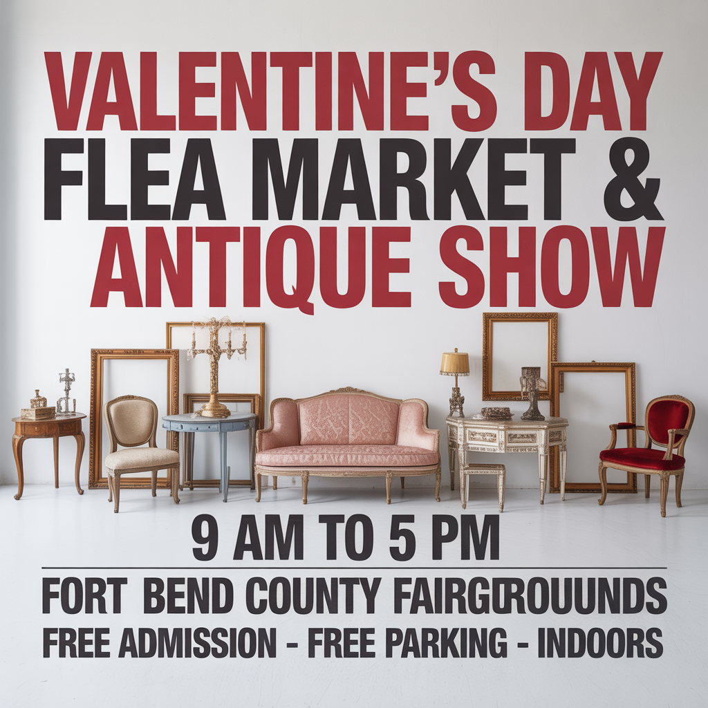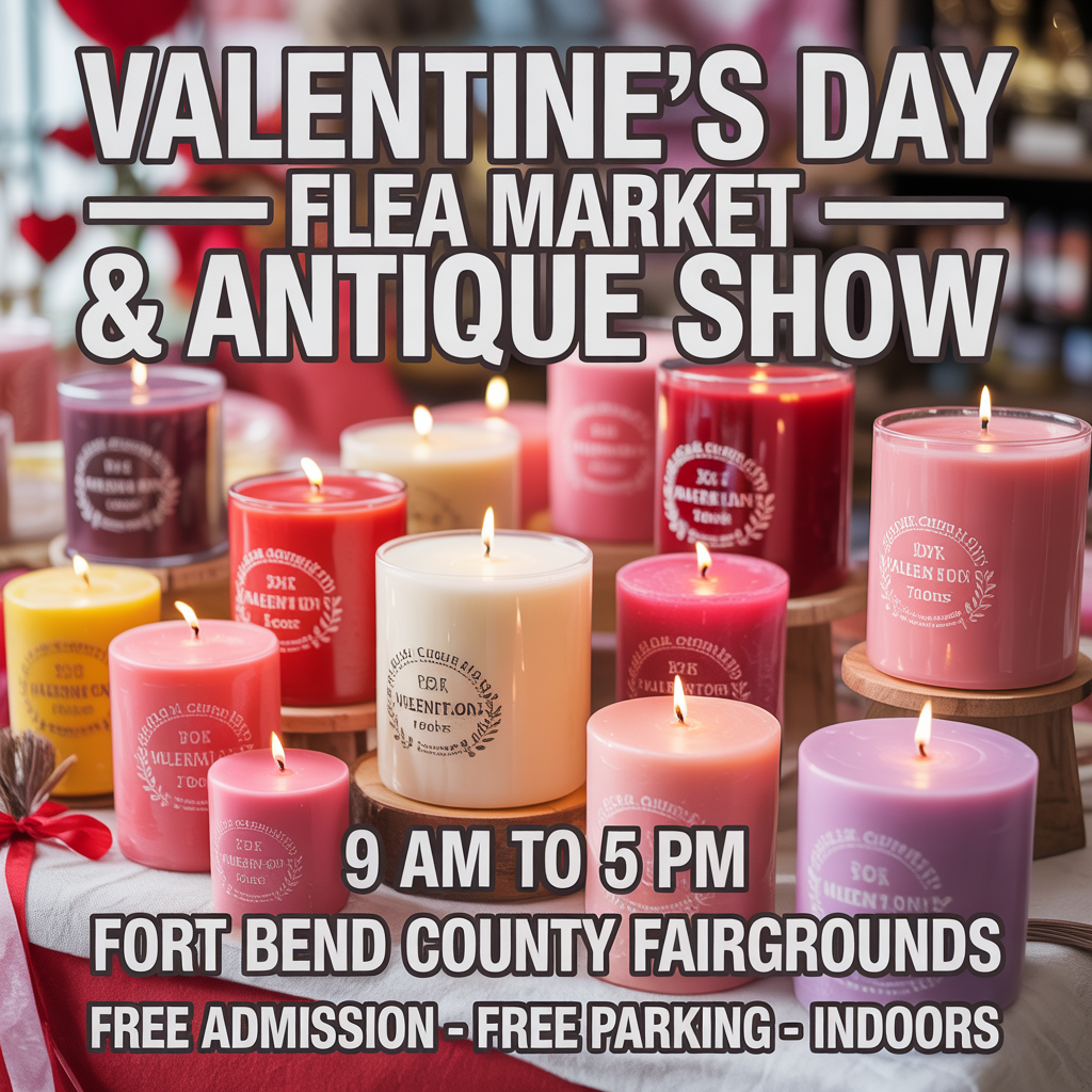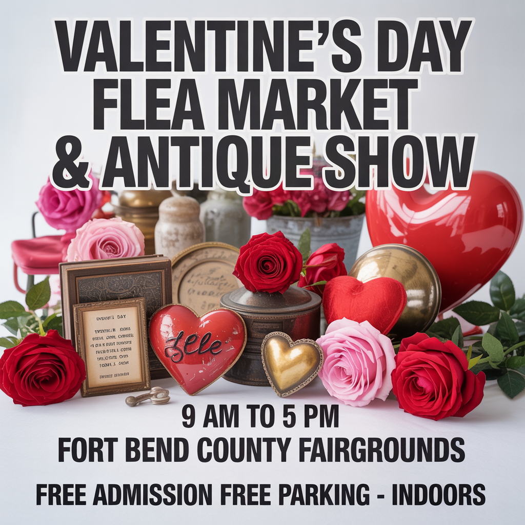 Thanks to our amazing vendors, our Valentine’s Day Flea Market & Antique Show was completely sold out! Shoppers turned out constantly making February 14th unforgettable. Come find your treasures and help us make the Fort Bend County newest flea market tradition a reality.