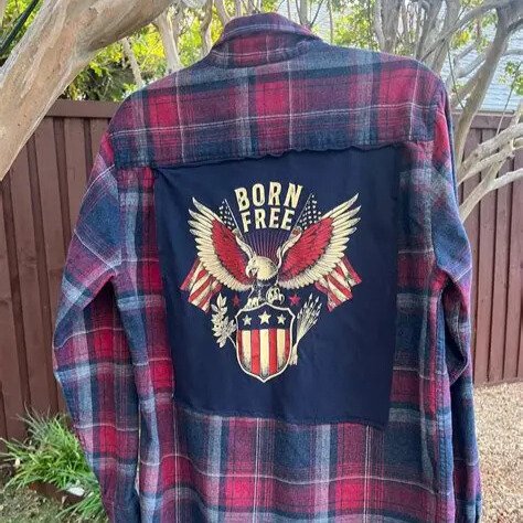 Message: flannel shirts that I’ve sewn appliqués on the back of – in various themes (holidays, college, faith, music, etc.)
